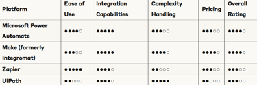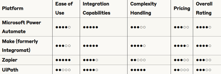 AI Integration: All major platforms are rapidly incorporating AI capabilities, enabling more intelligent decision-making within automated workflows. Power Automate and UiPath currently lead in this area.